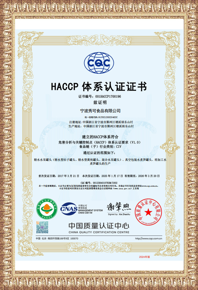 HACCP validates our science-based control of critical points throughout production, effectively preventing food safety hazards.