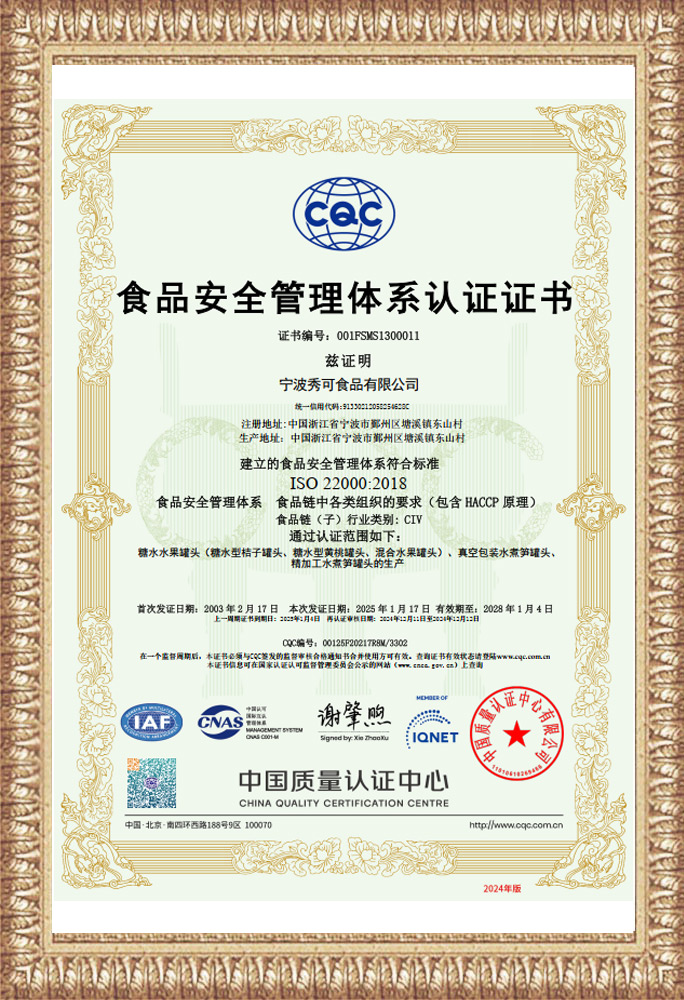 HACCP validates our science-based control of critical points throughout production, effectively preventing food safety hazards.